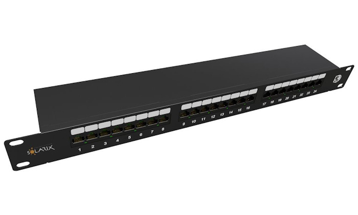 19" patch panel Solarix 24 x RJ45 CAT5E STP 1U SX24-5E-STP-BK-N