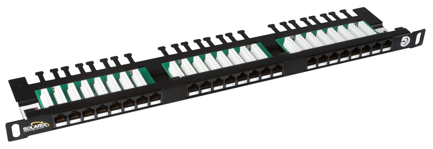 Patch panely Solarix s označením SX24HD-5E-UTP-BK jsou