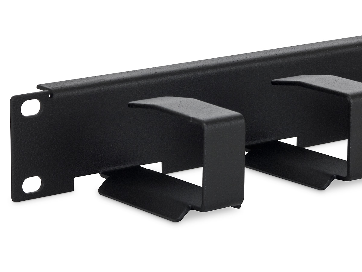 19" vyvazovací panel 1U, 6 x vyvazovací háček 70 x 27 mm s náběhem proti poškození optických vláken a kabelů