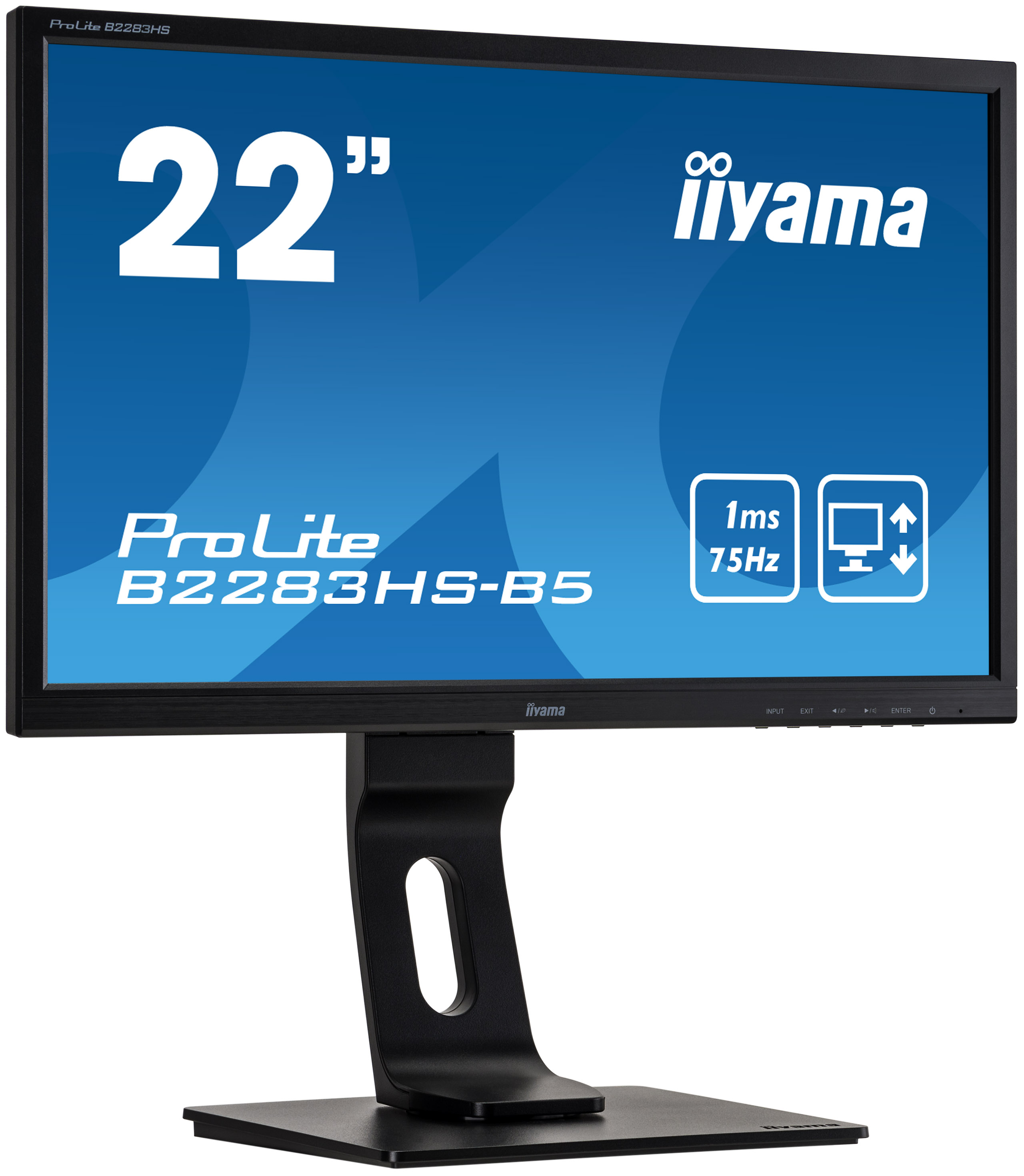 22" iiyama B2283HS-B5: TN, FullHD@75Hz, 250cd/ m2, 1ms, VGA, HDMI, DP, height, pivot, černý