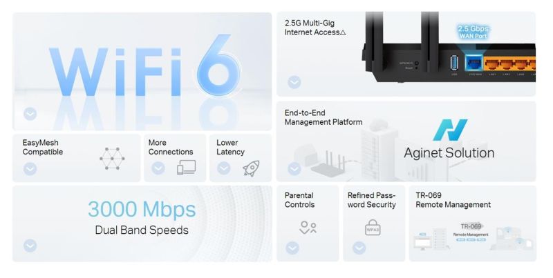 A-ISP PROGRAM TP-Link EX510 Pro - AX3000 Multi-Gigabit Wi-Fi 6 Router, 4x GLAN, 1x 2.5GWAN, USB 3.0, EasyMesh, AgiNet