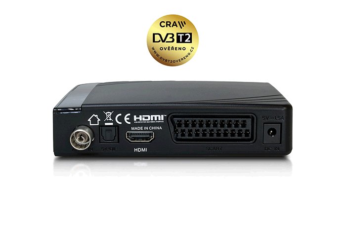 Prijímač získal označenie DVB-T2 ověřeno s logom CRA, ktoré