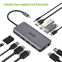 ACER 12v1 Type C dongle: 2 x USB3.2, 2 x USB2.0, 1x SD/ TF, 2 x HDMI, 1 x PD, 1 x DP, 1 x RJ45, 1 x 3.5 Audio