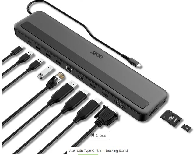 Acer 13in1 Type C Minidock: 3x USB3.0 (5Gbps Data Transfer), 1x