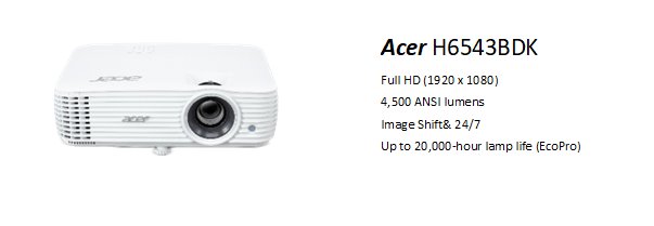 Acer H6543BDK DLP/ FullHD 1920x1080 /4500 ANSI lm/ 10 000:1/ 2xHDMI /repro 1x3W/ 2,6 Kg