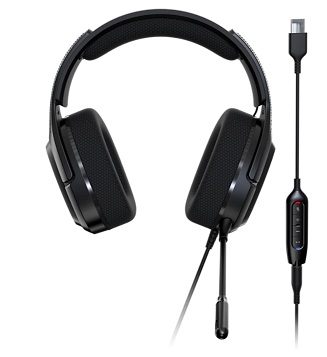 Acer Predator Galea 365 - herní sluchátka přes uši s 3,5mm konektorem nebo USB portem na ovladacím panelu; 7.1 surround