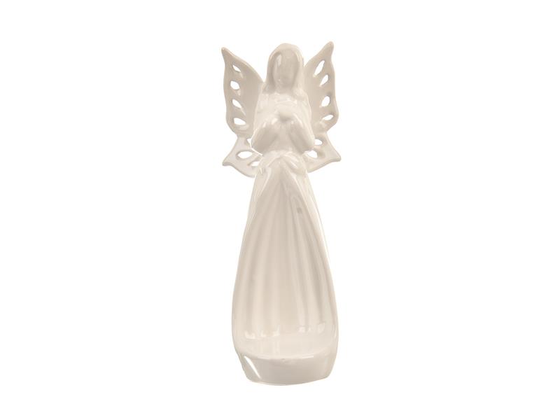 Anděl na svíčku INDECOR. Vlastnosti: - Rozměry: 9x8x23,5cm - Barva: Bílá perleť - Materiál: Keramika