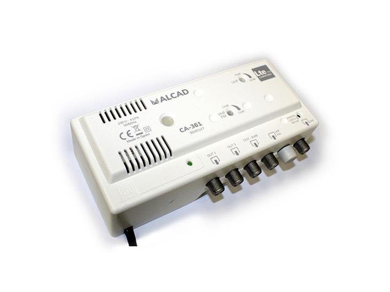 Anténní zesilovač ALCAD CA-361, 1xUHF +1xFM/ VHF BIII, 2x výstup, filtr 5G, domovní