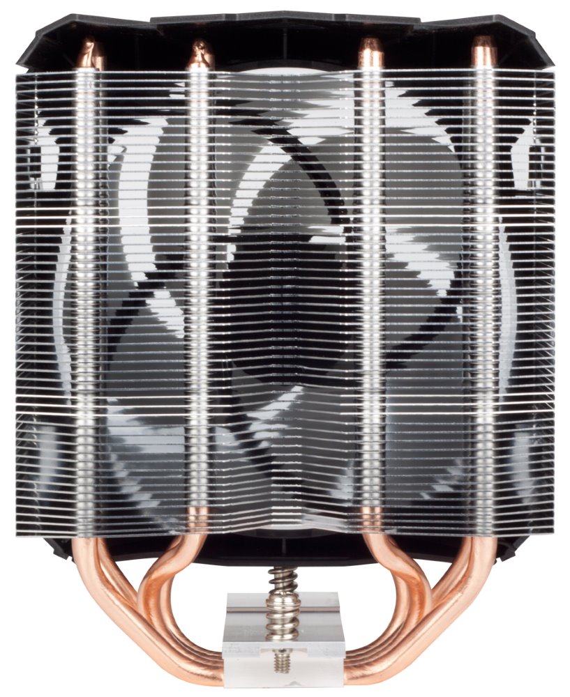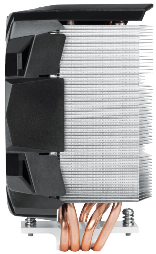 Chladič je vybaven 4 heatpipe a 120 mm ventilátorem s PWM regulací. K připojení slouží 4-pin PWM konektor.