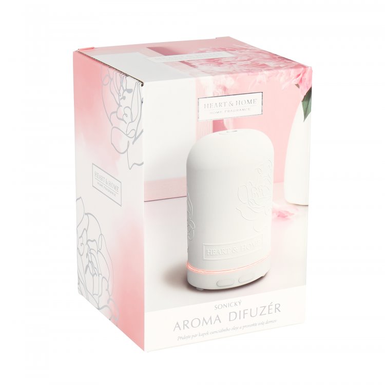 Provoňte si domov se sonickým difuzérem Heart and Home od Albi. Elektrický sonický difuzér je užitečným pomocníkem i hezkou domácí dekorací. Vonné esenciální oleje provoní každý kout vašeho domova. Do difuzéru můžete použít esenciální oleje Heart and Home i jiné. Oleje pomáhají ulevovat při dýchacích potížích, stresu a navozují příjemnou atmosféru v každém pokoji. Stačí přidat pár kapek oleje s vodou přímo do difuzéru. Ultrazvukové vibrace dávkují esenciální oleje v jemné mlze a vybrat si můžete kontinuální nebo přerušovaný chod. Aroma difůzér mění barvy ve 2 režimech – pomalu rotující barevné světlo nebo statické světlo. Esenciální oleje nejsou součástí balení.