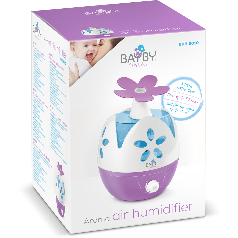 Ultrazvukový aroma zvlhčovač vzduchu s květinovými motivy značky Bayby nejen skvěle vypadá, ale také efektivně zvyšuje vlhkost vzduchu, čímž zvyšuje jeho kvalitu a má pozitivní vliv na zdraví dětí. Pracuje na principu vysokofrekvenčního ultrazvukového oscilátoru 2,4 Mhz. Díky této speciální technologii produkuje studenou páru a neovlivňuje teplotu v místnosti. Zásobník na vodu můžete použit též na esenciální látky, což ocení nejen maminky, které věří v sílu aromaterapie.
