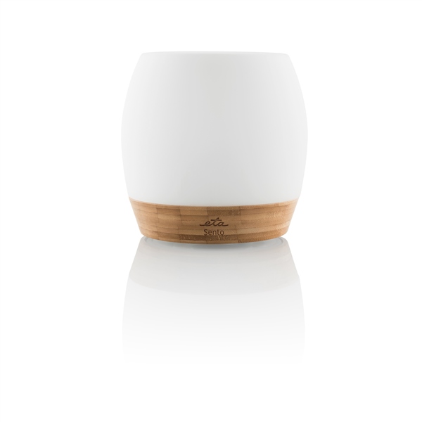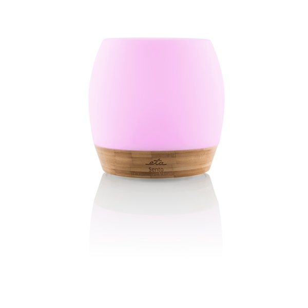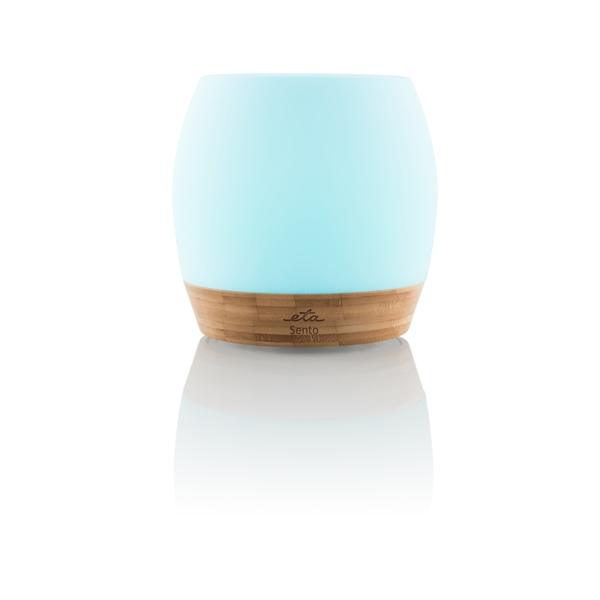ETA Sento vydrží být až 8 hodin v nepřetržitém provozu, který je doprovázený barevným osvětlením pro zpříjemnění relaxace. Díky skleněnému provedení v kombinaci s bambusovým dřevem navíc poslouží i jako luxusní, ale vkusný doplněk do každého interiéru. Difuzér je určený do místnosti o rozloze až 20 metrů čtverečních. Aroma difuzér obsahuje zásobník o objemu 100 ml a funkcí automatického vypnutí po jeho vyčerpání.