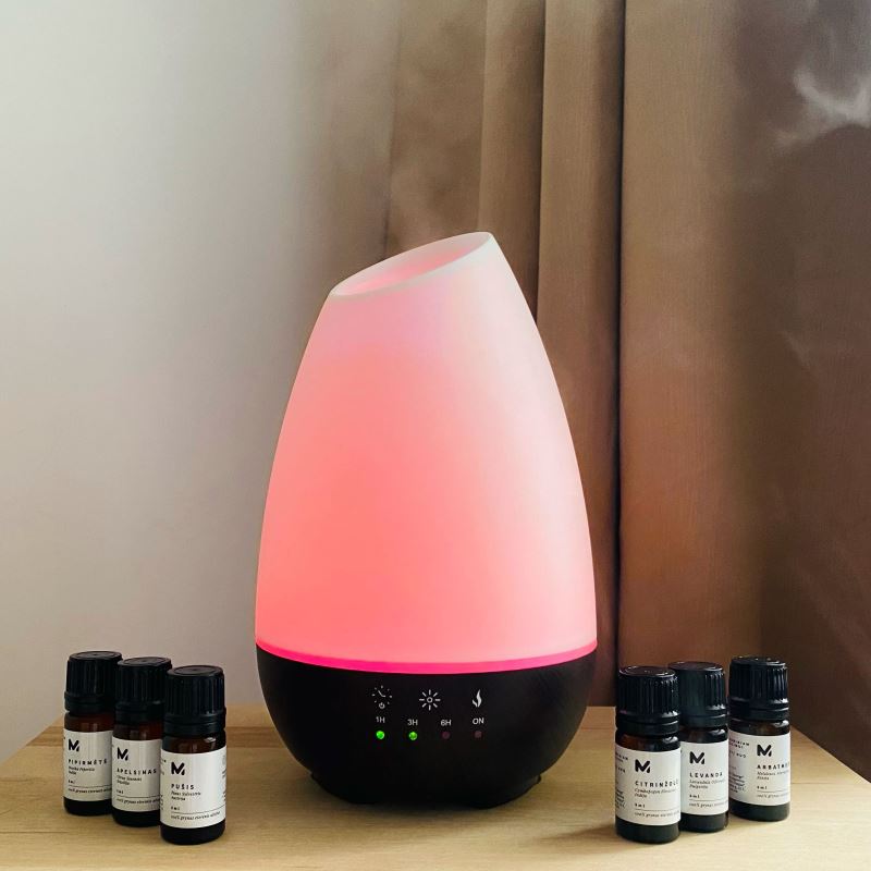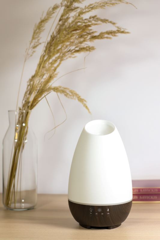 - Snadné použití – stačí nalít vodu do nádržky a přidat 2 až 3 kapky přírodního éterického oleje