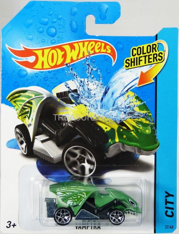 Je to jako mít 2 autíčka v 1! Můžete vyrazit na silnici, závodit po dráze, pak změnit barvu a závodit znovu. Tato série nabízí širokou škálu dekorů a odstínů, které ocení každý malý i velký sběratel. Autíčka Hot Wheels Color Shifters jsou vyrobená z kvalitního a odolného plastu v měřítku 1 : 64. Při objednávce získáte 1 náhodné autíčko z 5 modelů Hot Wheels Color Shifters – Dodge Camaro '67 (černá nebo červená), Hot Wheels 24/Seven – kopie Mazdy RX-7 FD3S (černá nebo modrá), Hot Wheels Vampyra (bílá nebo zeleno-žlutá), Hot Wheels Dragon Blaster (oranžová nebo tmavě hnědá) či Lamborghini Gallardo LP 570-4 (bílá nebo červená).