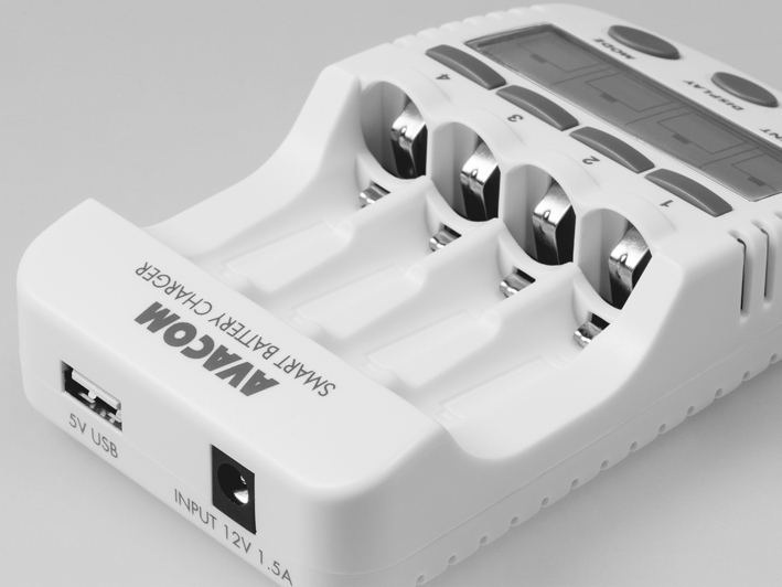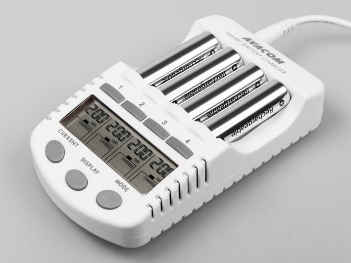 Inteligentní čtyřkanálová nabíječka tužkových AA a mikrotužkových AAA baterií. Nabíjí Ni-MH a Ni-Cd baterie. Nabíjecí proud 200, 500, 700, a 1000mA.