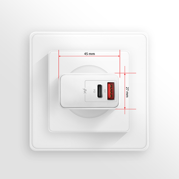 Díky celkovému výkonu 22W nabíječka dobíjí mobilní zařízení nejvyšší možnou rychlostí. Adaptér nabízí nejen standardní USB-A konektor , ale také moderní oboustranný USB-C konektor .