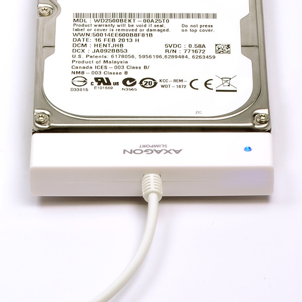 Instalaci zvládne i úplný laik - disk se připojí k adaptéru a adaptér do USB portu počítače, zbytek proběhne automaticky.