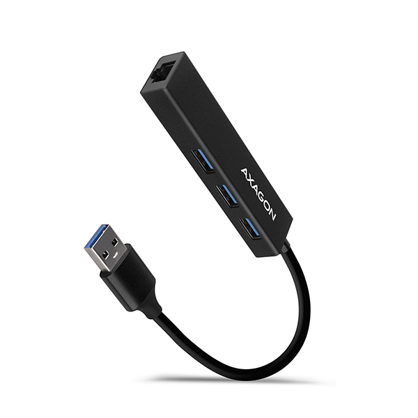 AXAGON HMA-GL3A, USB 3.2 Gen 1 hub, porty 3x USB-A + Gigabit Ethernet, kovový, kabel USB-A 20cm