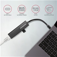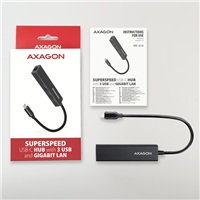 AXAGON HMC-GL3A, USB 3.2 Gen 1 hub, porty 3x USB-A + Gigabit Ethernet, kovový, kabel USB-C 20cm