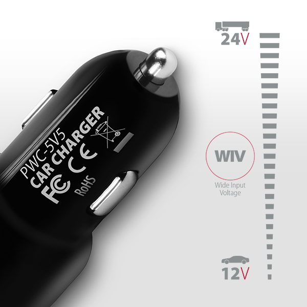 Díky celkovému výkonu 24W nabíječka dobíjí mobilní telefony i tablety stejnou rychlostí jako síťový napájecí USB adaptér.