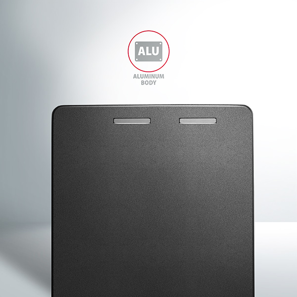 Vnější kovový plášť je proveden v černé barvě s elegantním matným
