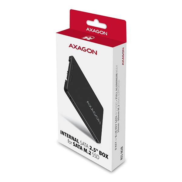 AXAGON RSS-M2B, SATA - M.2 SATA SSD, interní 2.5" ALU box, černý