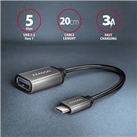 AXAGON RUCM-AFAC kabelová redukce USB-C male <-> USB-A female, 20cm, USB 3.2 Gen 1, 3A, ALU