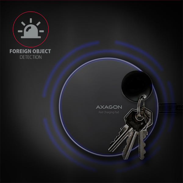 telefony v pouzdře. Nabíječka má integrovanoudetekci cizích předmětů, nabíjení se tak nespustí například odložením klíčů.