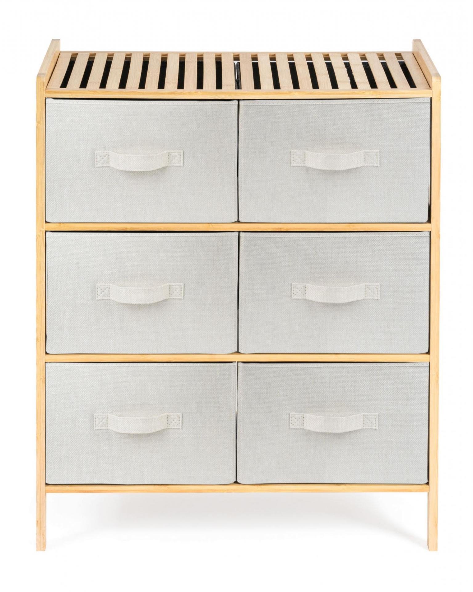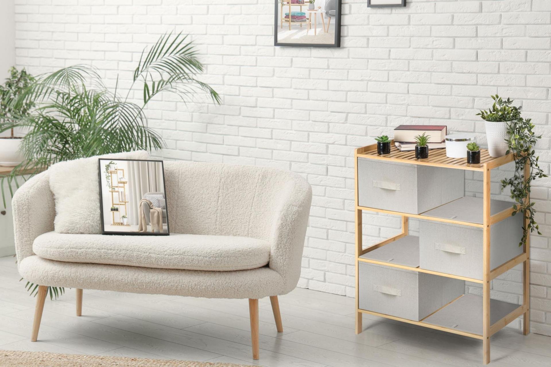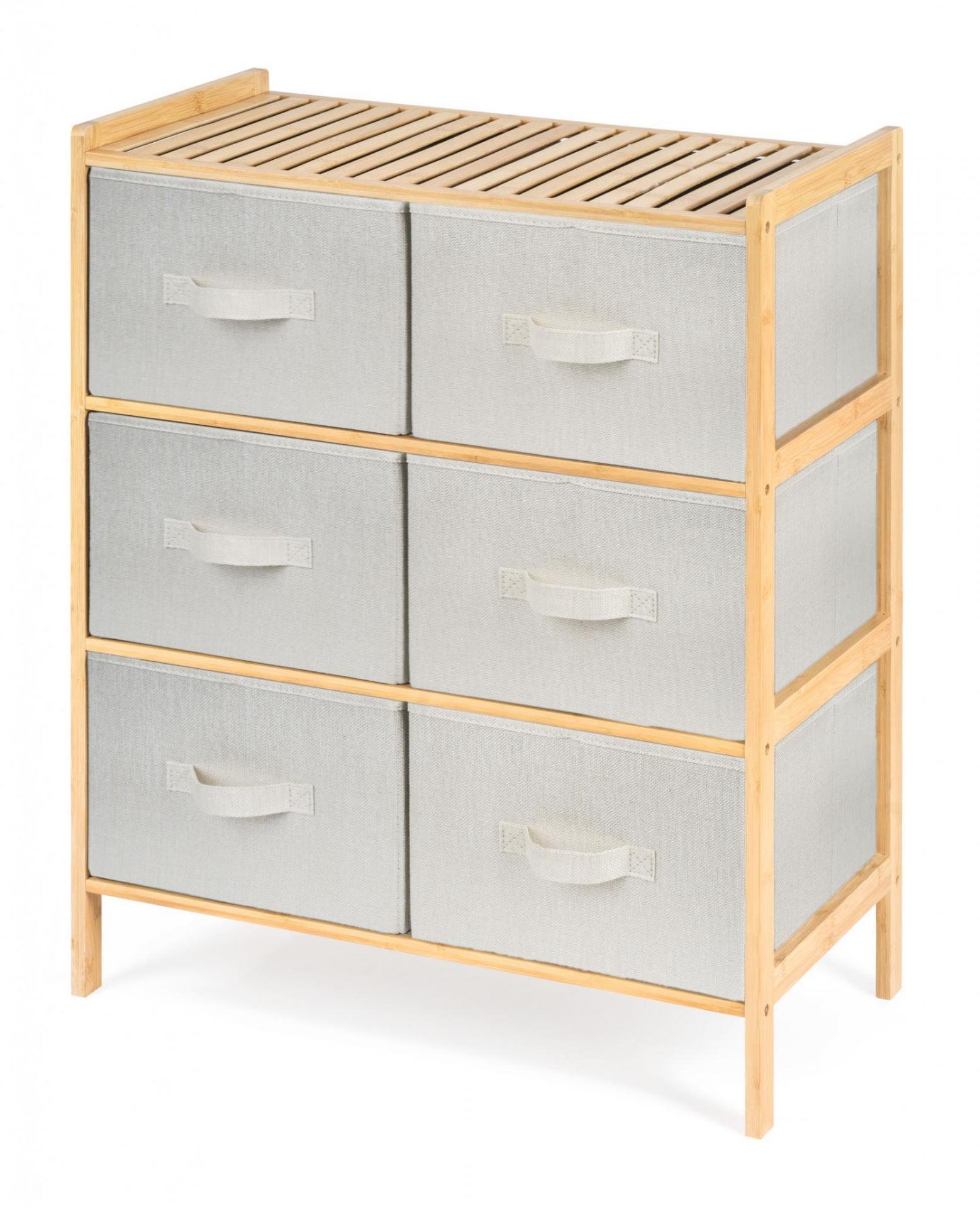 Bambusový regál s výsuvnými látkovými zásuvkami dodává interiéru příjemný přírodní dojem, pocit lehkosti a přirozenosti, zatímco jeho pevnost a dlouhá životnost zajišťují stabilitu a trvanlivost.