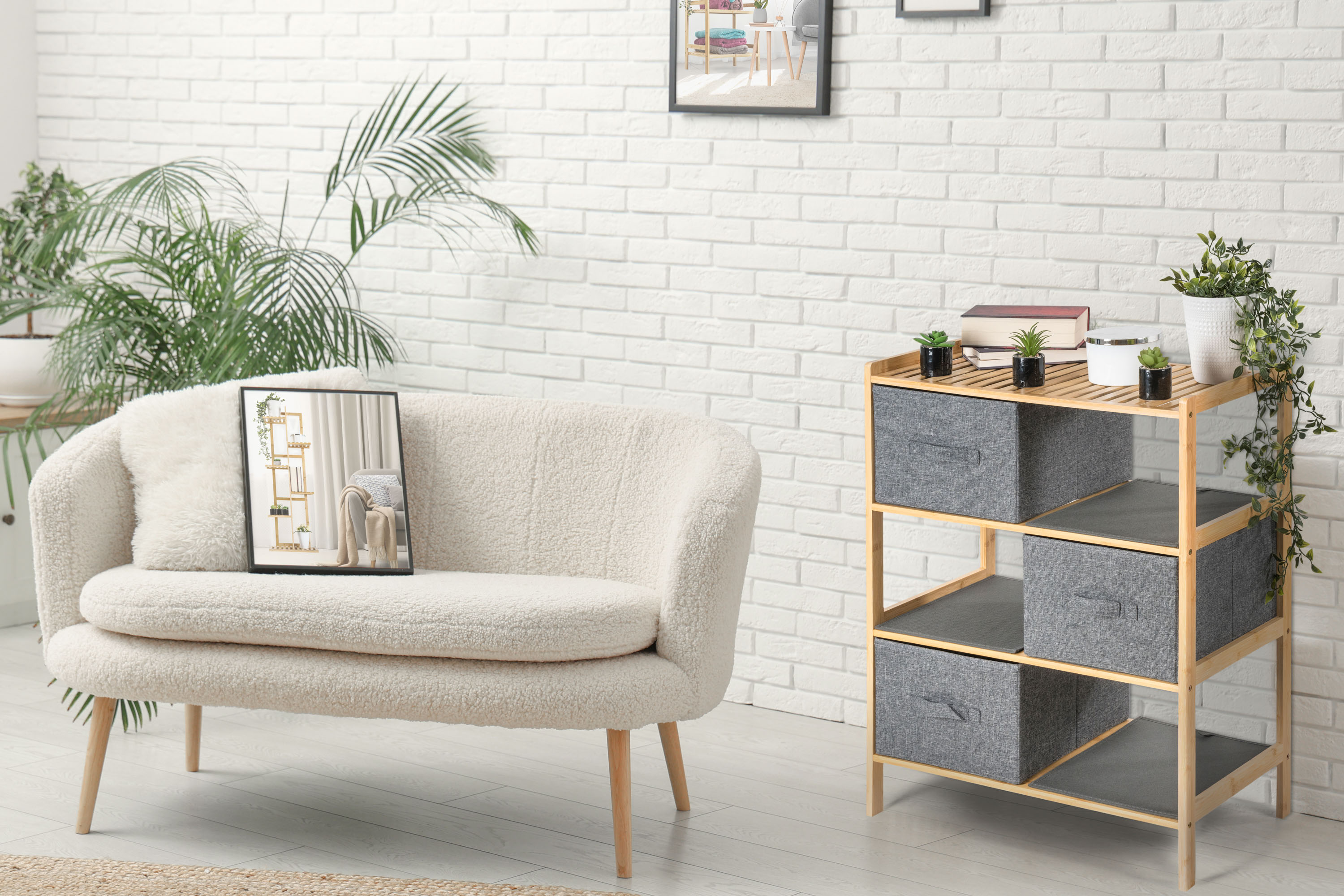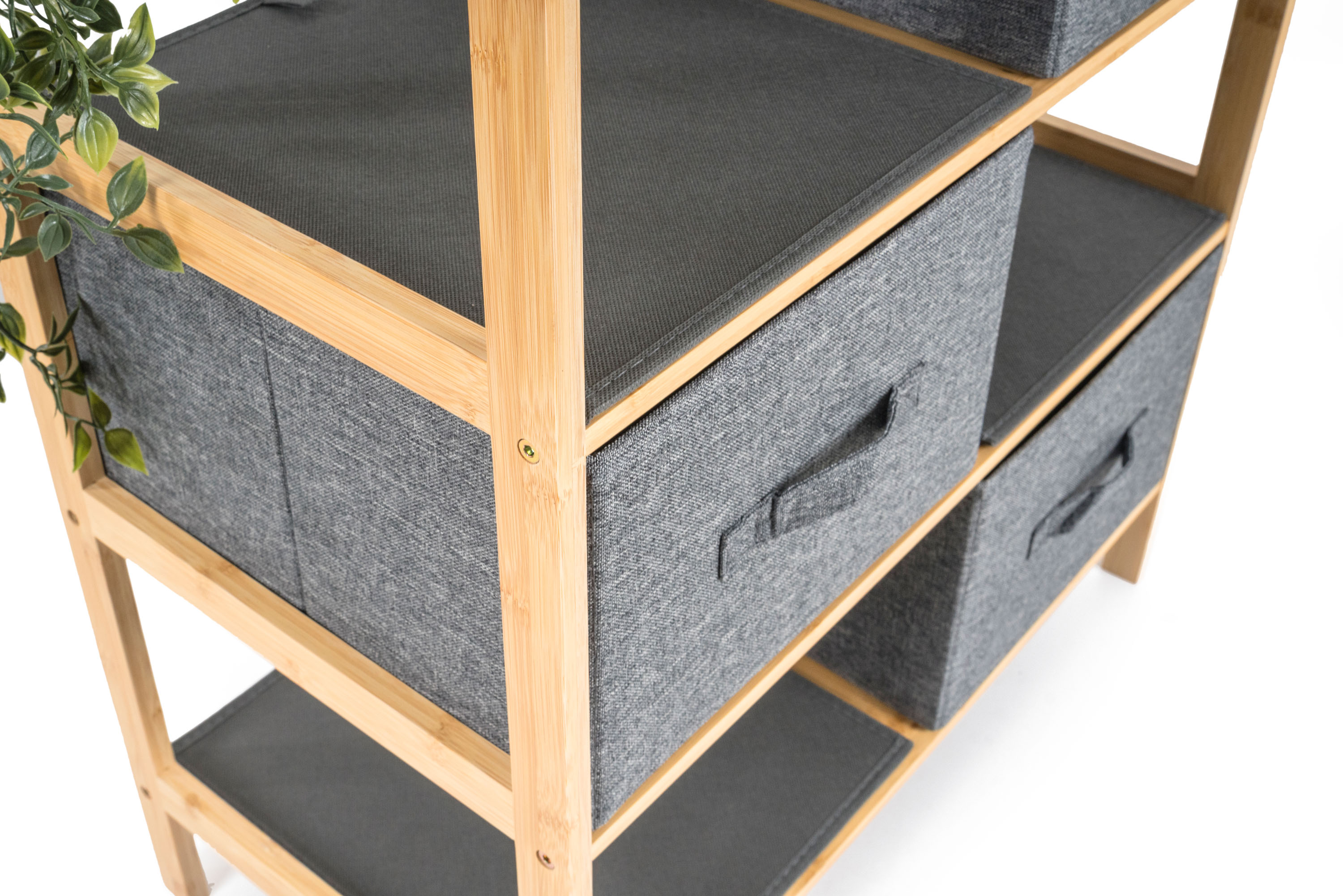 - Určení: bambusový regál s textilními košíky