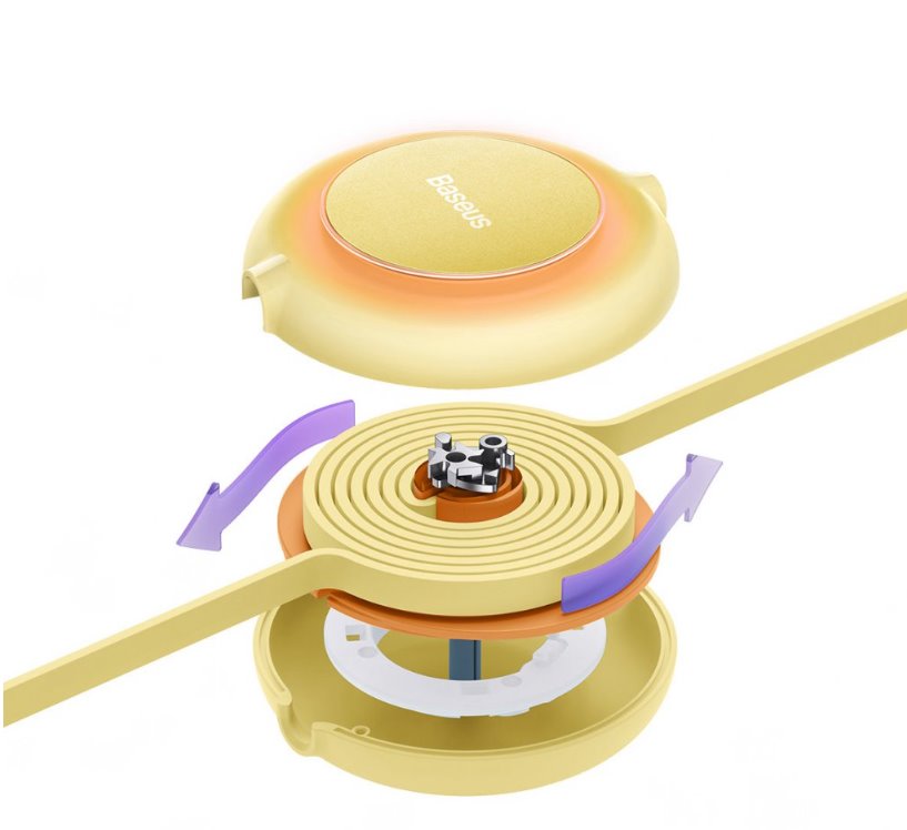 Kabel samotný je plochý a lze ho pouhým zatažení smotat do pouzdra,