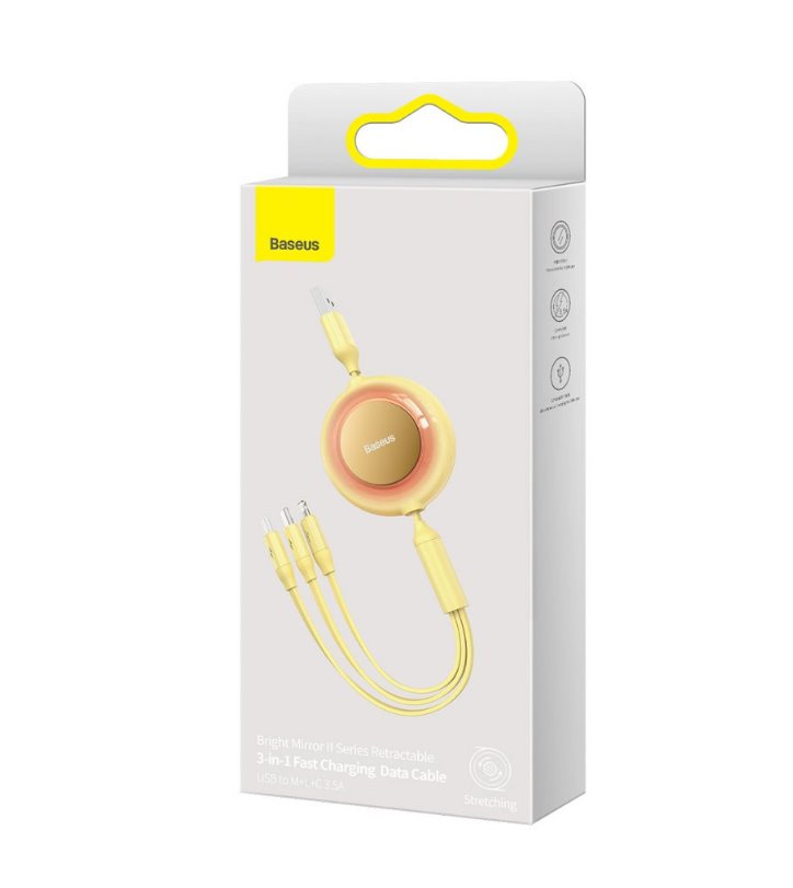 Baseus CAMJ010011 Bright Mirror Kabel 3v1 MicroUSB/ USBC/ Lightning 3,5A 1.1m Yellow