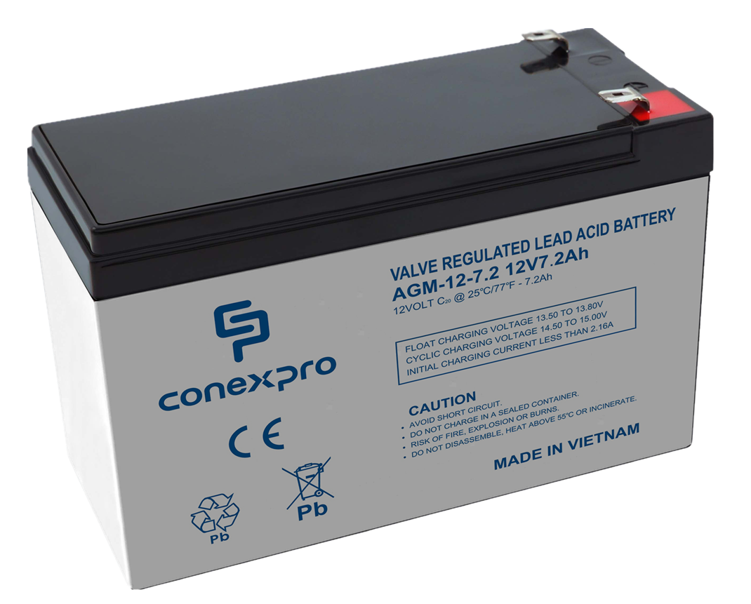 Hermeticky uzavřený olověný akumulátor Conexpro AGM-12-7.2 o kapacitě 7,2 Ah a napětí 12 V je vhodný pro zdroje nepřerušovaného napájení, požární, zabezpečovací, přístupové, telekomunikační a solární systémy i pro celou řadu dalších aplikací. Řadí se mezi bezúdržbové VRLA AGM baterie s elektrolytem, který je nasáklý v netkané tkanině ze skelných vláken. Tento model je tak odolný vůči otřesům a vytečení a práce v náklonu či jiné poloze mu nebude dělat žádné obtíže. Akumulátor má navíc výborné nabíjecí charakteristiky, nabízí lepší teplotní stabilitu, odolá cyklické zátěži (nabíjení a vybíjení) a dosahuje životnosti až 10 let, díky čemuž vám bude sloužit naprosto spolehlivě.