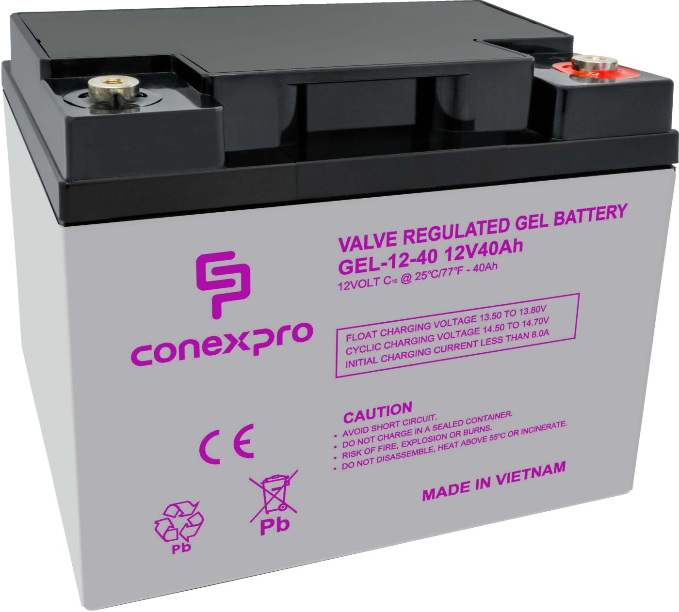 Gelová baterie Conexpro s výstupním napětím 12 V a kapacitou 40 Ah má širokou škálu využití. Použijete ji jako záložní zdroj a UPS, pro elektronické protipožární systémy, elektronické zabezpečovací systémy, nouzová osvětlení, napájení elektromotorů, telekomunikační zařízení nebo zálohování oběhových čerpadel či kotlů. Snoubí v sobě úžasný poměr výkonu a velikosti.