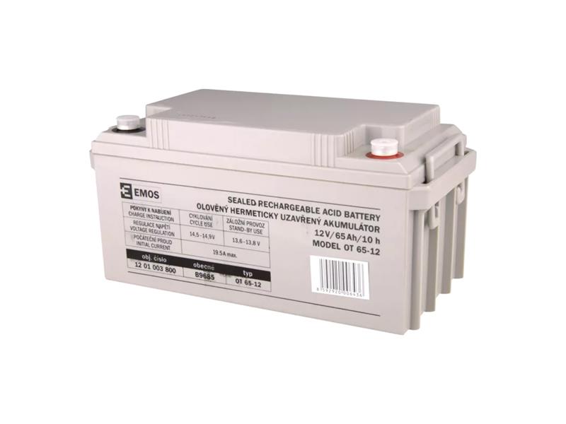 Bezúdržbový olověný akumulátor 12 V/65 Ah M8, je vhodný jako náhradní baterie pro záložní zdroje UPS, RBC kity, nouzové osvětlení, echoloty, sonary, elektronické systémy EZS, EPS apod. Bezúdržbový, ventilem řízený olověný akumulátor v provedení AGM umožňuje být používán v libovolné poloze. Optimální životnost v záložních systémech je 5 let. Nabíjení baterie musí být prováděno vhodným napájecím zdrojem nebo nabíječem, který má hodnotu nabíjecího napětí 14,4 V pro 12 V akumulátory a 7,2 V pro 6 V akumulátory. V případě, že nabíječ nebo napájecí zdroj nemá tyto parametry, tak dochází k neúplnému nabíjení a dochází k tomu, že akumulátor bude rychle spotřebován a v krajním případě zničen.