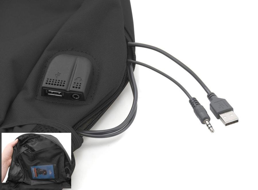 Na čelní straně batohu se nachází Molle vazba. Snadno k ní uchytíte další vybavení – například pouzdro s drobnostmi. Díky USB a sluchátkovému konektoru propojíte mobil či jiné zařízení uvnitř batohu například se sluchátky. Pohodlně posloucháte hudbu, i když jste zrovna na cestách.