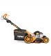 Měkčené a ergonomicky tvarované rukojeti zaručují pohodlí při práci. Pod madlem najdete šikovný držák na pití a drobné věci. Díky velkým předním i zadním kolům s kuličkovými ložisky, která snižují valivý odpor, se vám bude se sekačkou dobře manévrovat.