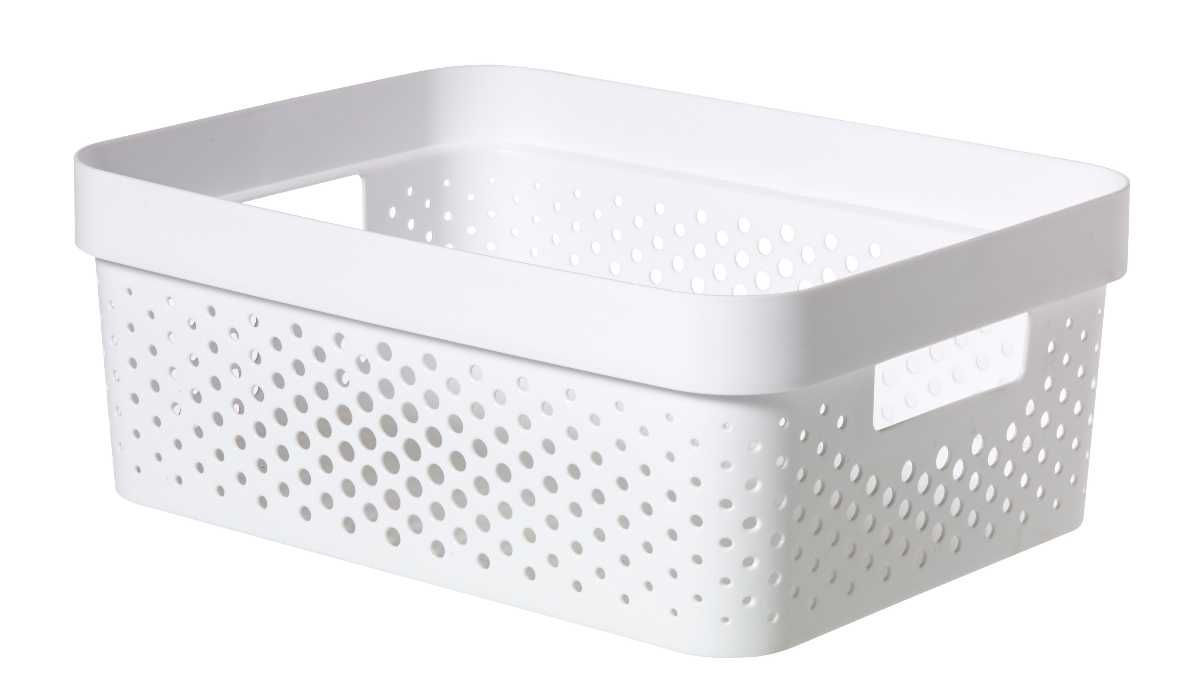 Tento stylový a praktický box se vyrábí ze 100% recyklovaného plastu. Je tedy šetrnější k životnímu prostředí. Box má všechny stěny perforované malými dírkami. Je tedy ideální pro všechny předměty, které při skladování potřebují proudění vzduchu. Na kratších stěnách se nachází dvě madla. Využijete je pro přenášení boxu. Navíc doplní vybavení kuchyně, obývacího pokoje, ložnice i koupelny.