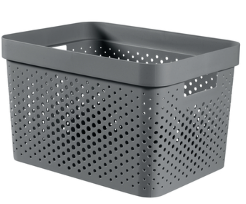 Tento stylový a praktický box se vyrábí ze 100% recyklovaného plastu. Je tedy šetrnější k životnímu prostředí. Box má všechny stěny perforované malými dírkami. Je tedy ideální pro všechny předměty, které při skladování potřebují proudění vzduchu. Na kratších stěnách se nachází dvě madla. Využijete je pro přenášení boxu. Navíc doplní vybavení kuchyně, obývacího pokoje, ložnice i koupelny.