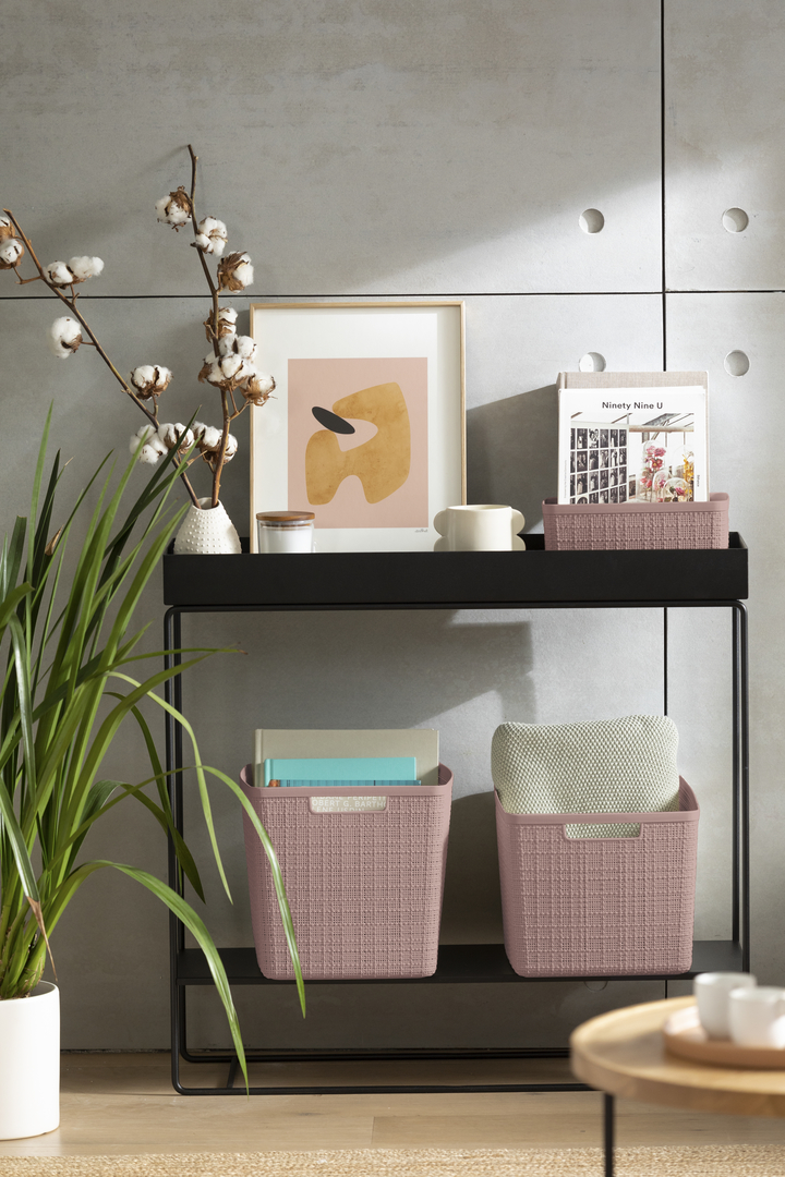 Tento stylový a praktický box se vyrábí ze 100% recyklovaného plastu. Je tedy šetrnější k životnímu prostředí. Jeho provedení připomíná tkaninu a perfektně zapadne do každého prostředí. Doplní vybavení kuchyně, obývacího pokoje, ložnice a klidně i koupelny.