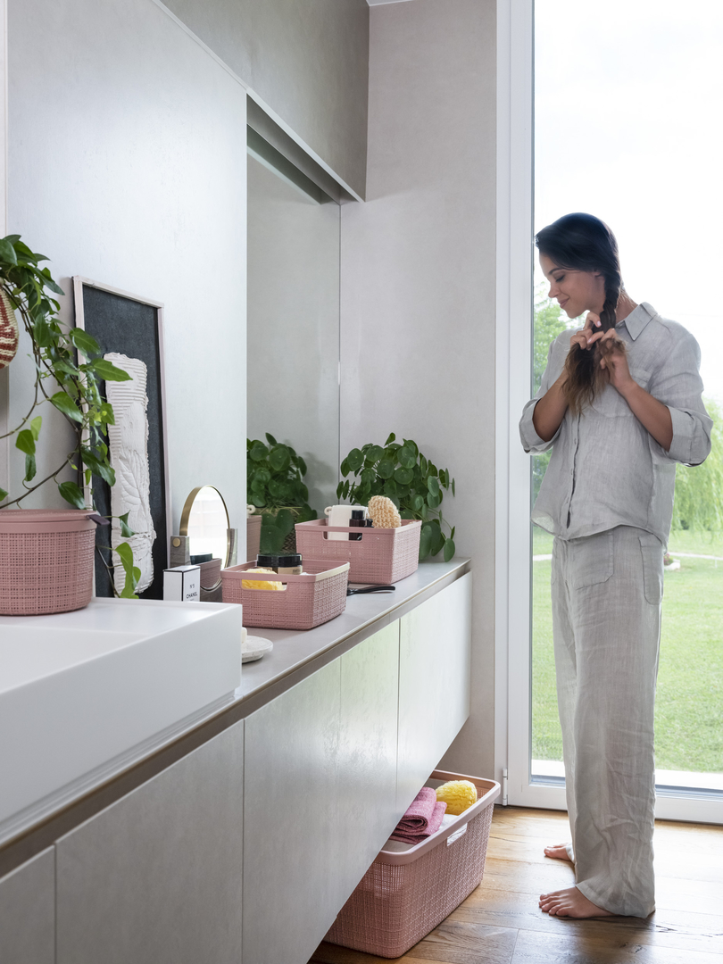 Tento stylový a praktický box se vyrábí ze 100% recyklovaného plastu. Je tedy šetrnější k životnímu prostředí. Jeho provedení připomíná tkaninu a perfektně zapadne do každého prostředí. Doplní vybavení kuchyně, obývacího pokoje, ložnice a klidně i koupelny.