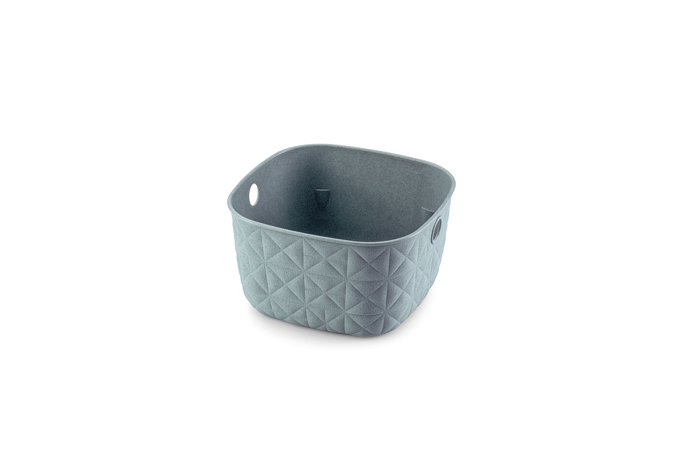Tento stylový a praktický box se vyrábí ze 70% recyklovaného plastu. Je tedy šetrnější k životnímu prostředí. Zdobí ho jemná textura v podobě trojúhelníků a čtverců, která připomíná prošívanou tkaninu. Doplní vybavení kuchyně, obývacího pokoje, ložnice a klidně i koupelny.
