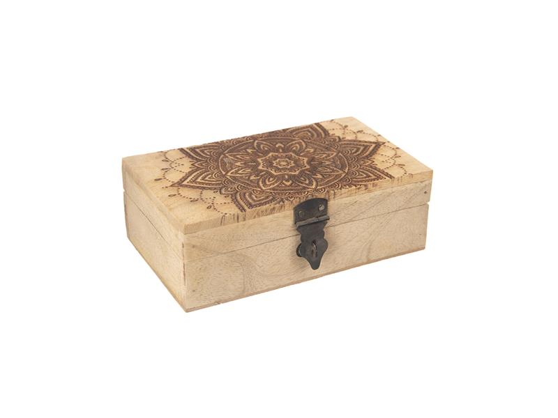 Box z mangového dřeva INDECOR Mandala. Vlastnosti: - Rozměry: 18x10x6cm