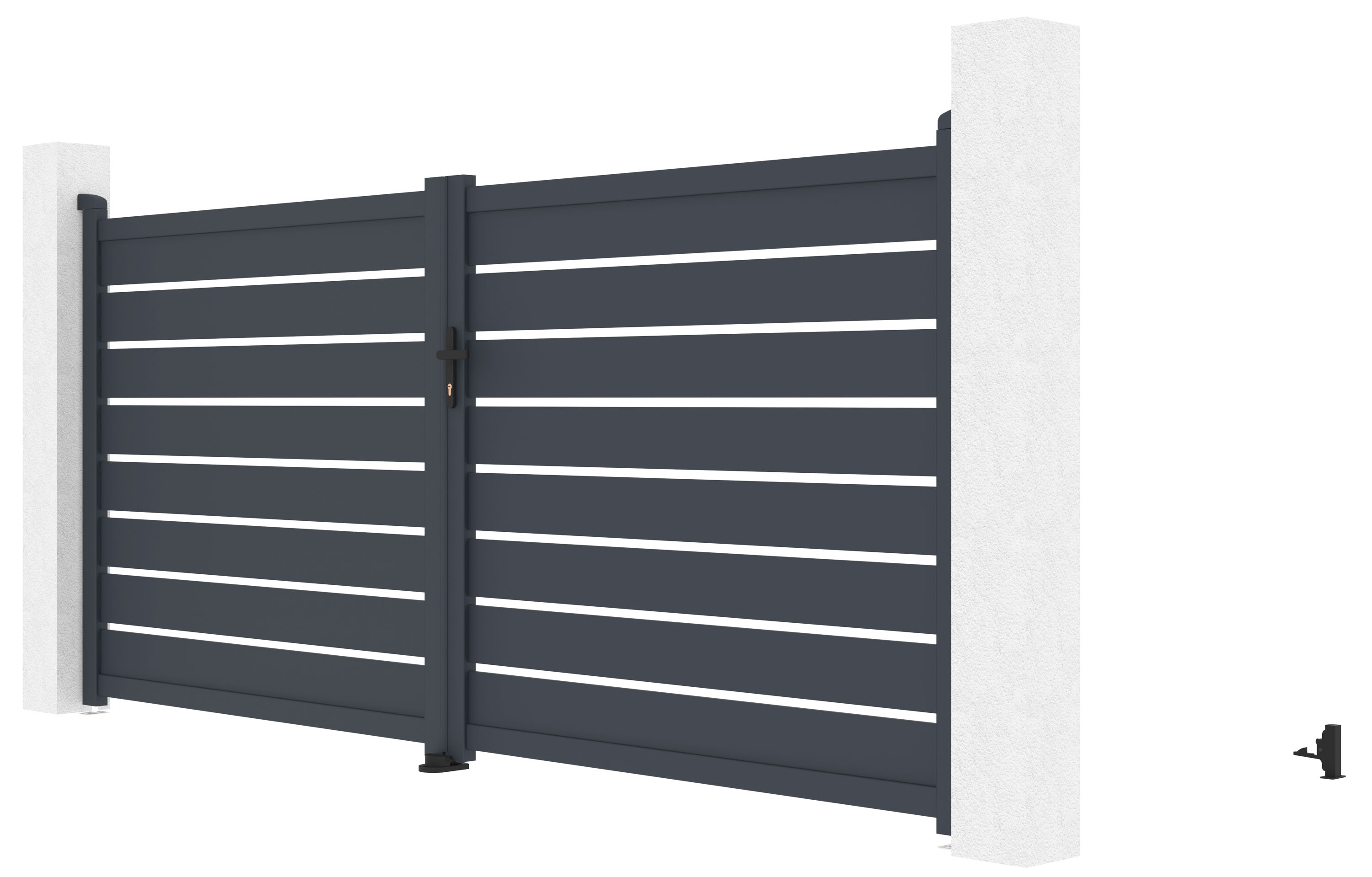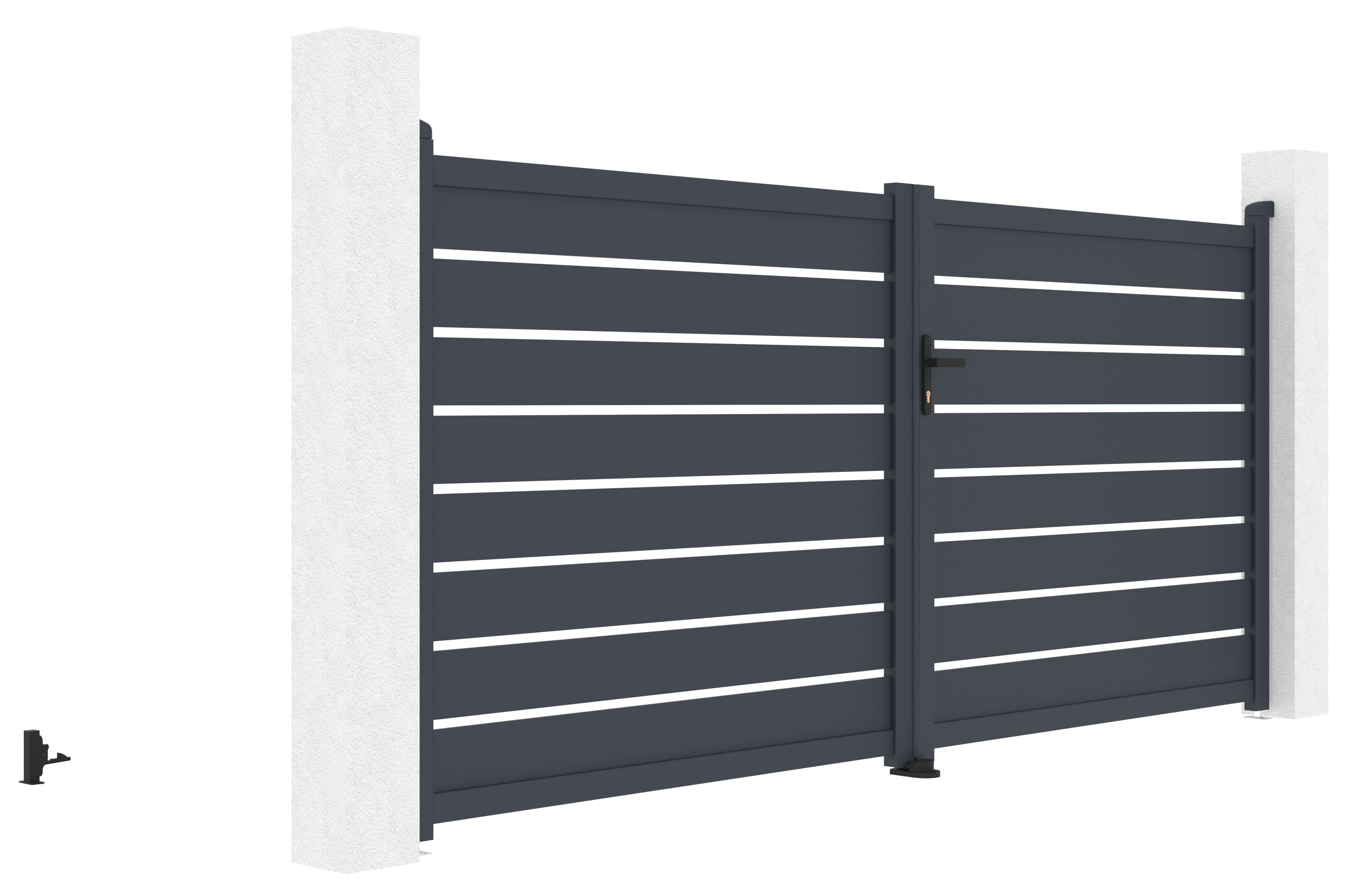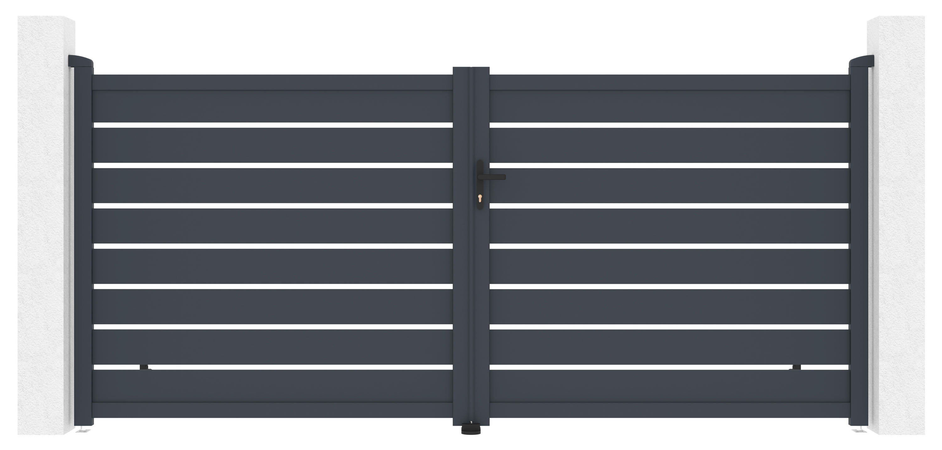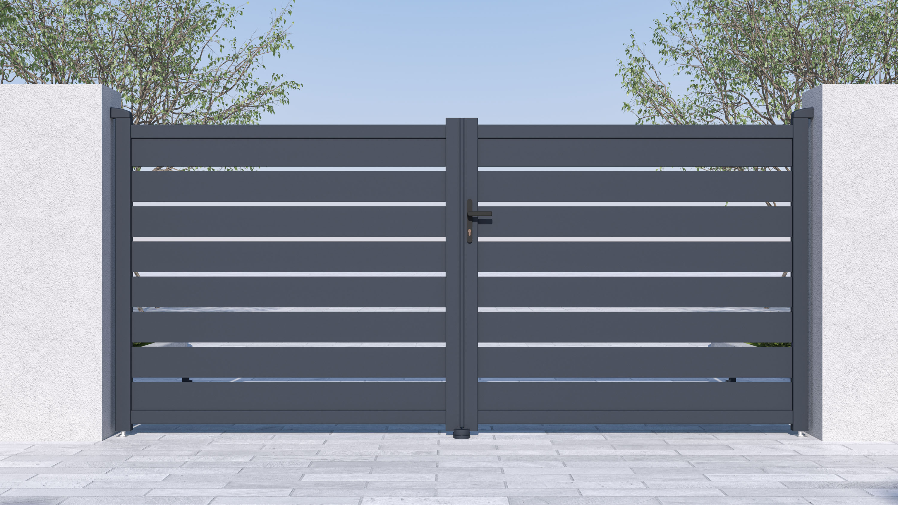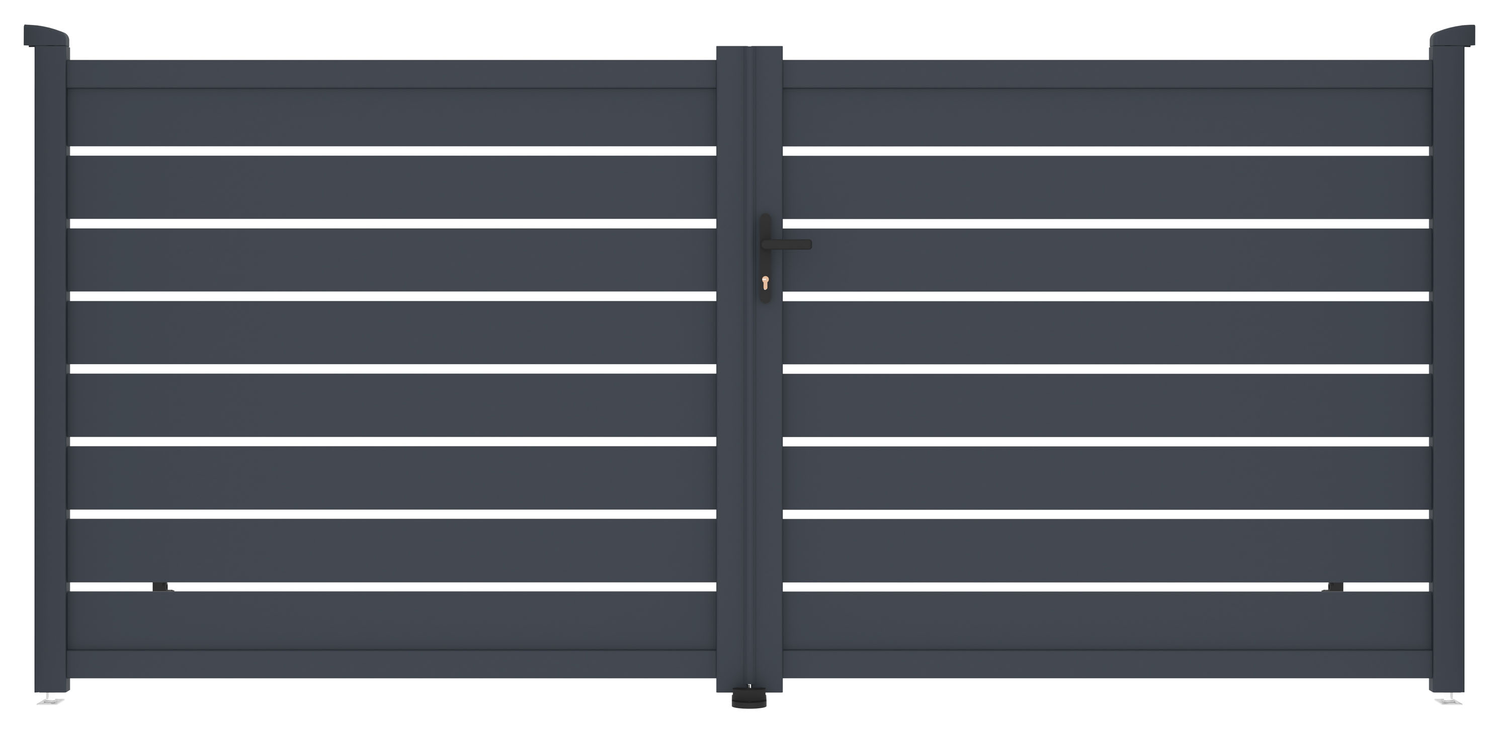 Vjezdovou bránu Reno jsme vyrobili z lehkého, pevného a hlavně bezúdržbového hliníku. Je odolný vůči prasknutí i prohnutí, nezreziví a antracitový odstín, nanesený práškovým nástřikem, dodává vjezdové bráně atraktivitu a stálobarevnost. Zesílený profil dvoukřídlé vjezdové brány Reno vám navíc v budoucnu umožní montáž elektrického otevírání.