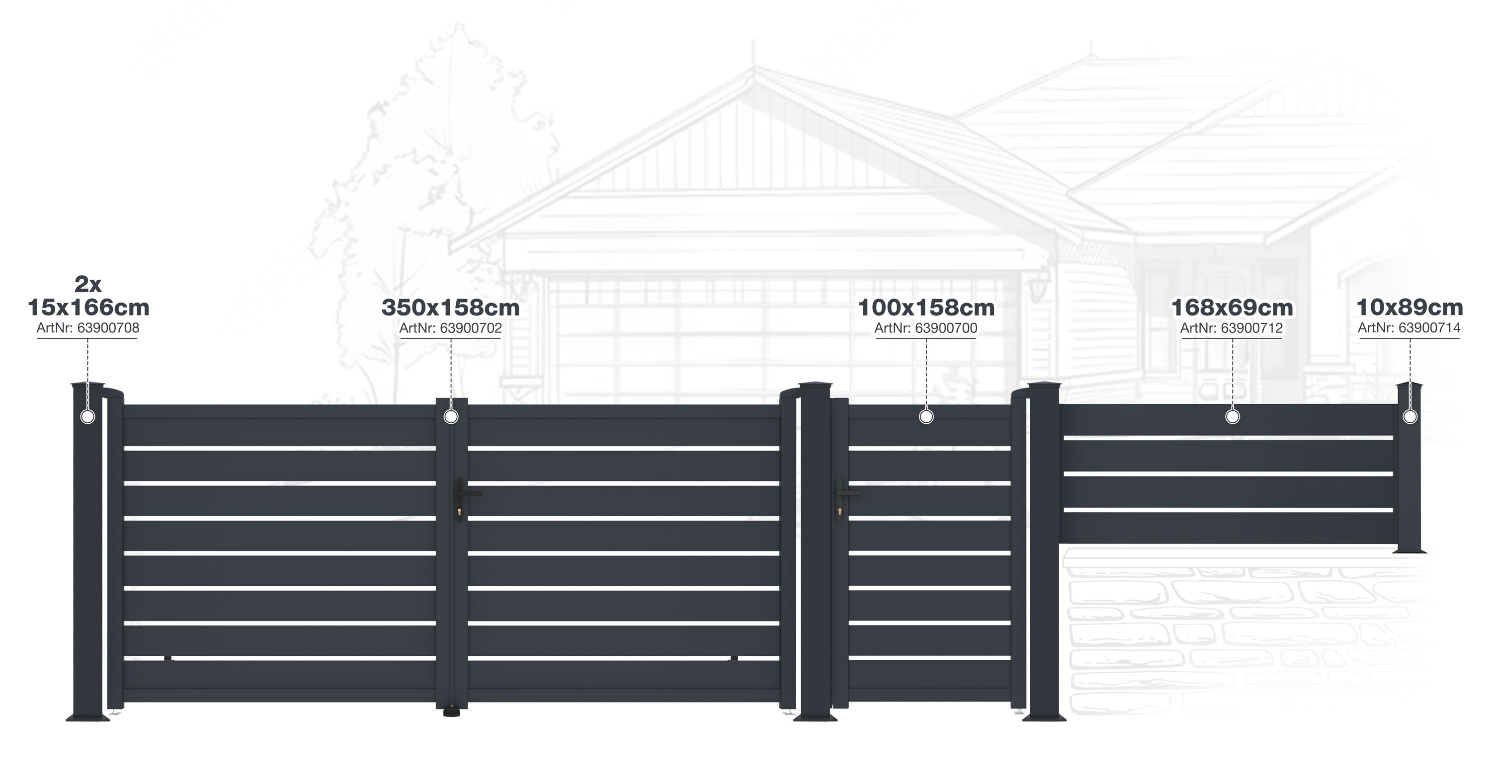 - Moderní hliníkové branky, brány a plotová pole řady G21 Reno kombinují robustnost s lehkostí, což zajišťuje dlouhou životnost a odolnost vůči povětrnostním vlivům.