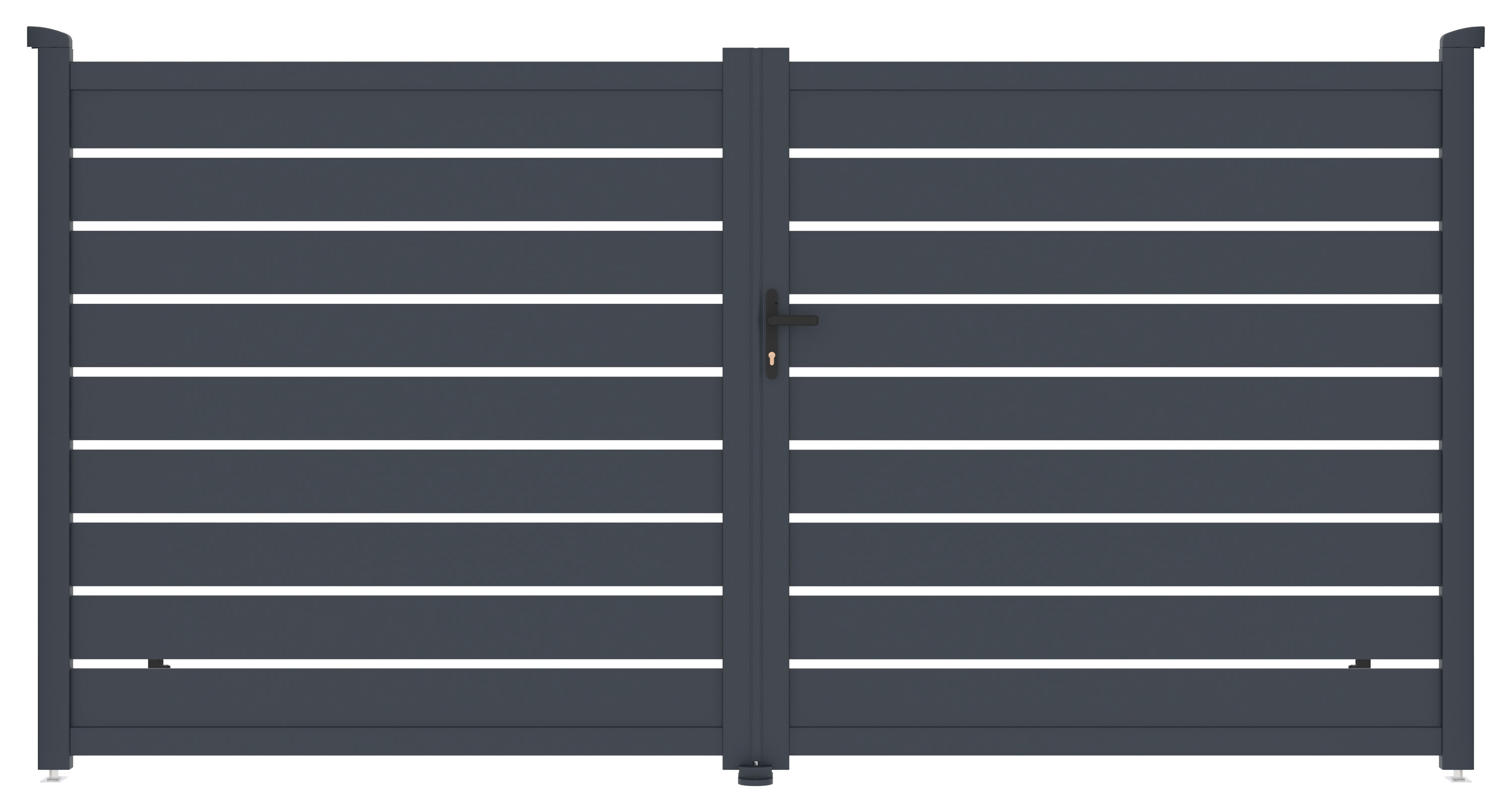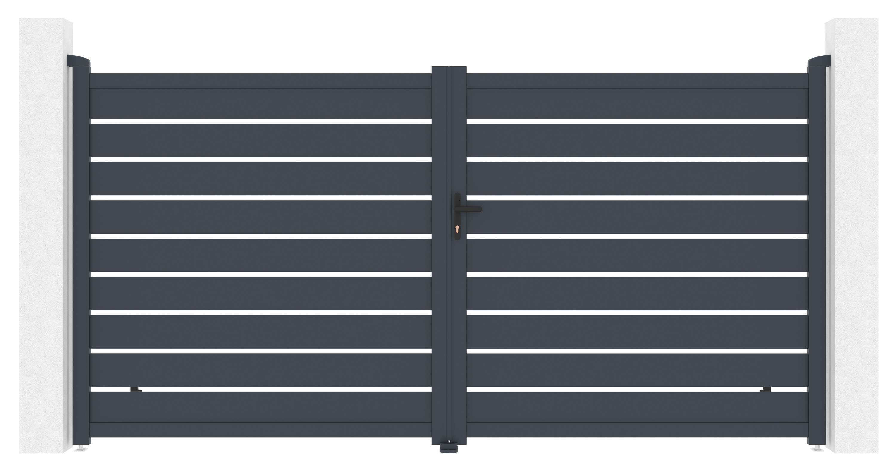 Vjezdovou bránu Reno jsme vyrobili z lehkého, pevného a hlavně bezúdržbového hliníku. Je odolný vůči prasknutí i prohnutí, nezreziví a antracitový odstín, nanesený práškovým nástřikem, dodává vjezdové bráně atraktivitu a stálobarevnost. Zesílený profil dvoukřídlé vjezdové brány Reno vám navíc v budoucnu umožní montáž elektrického otevírání.
