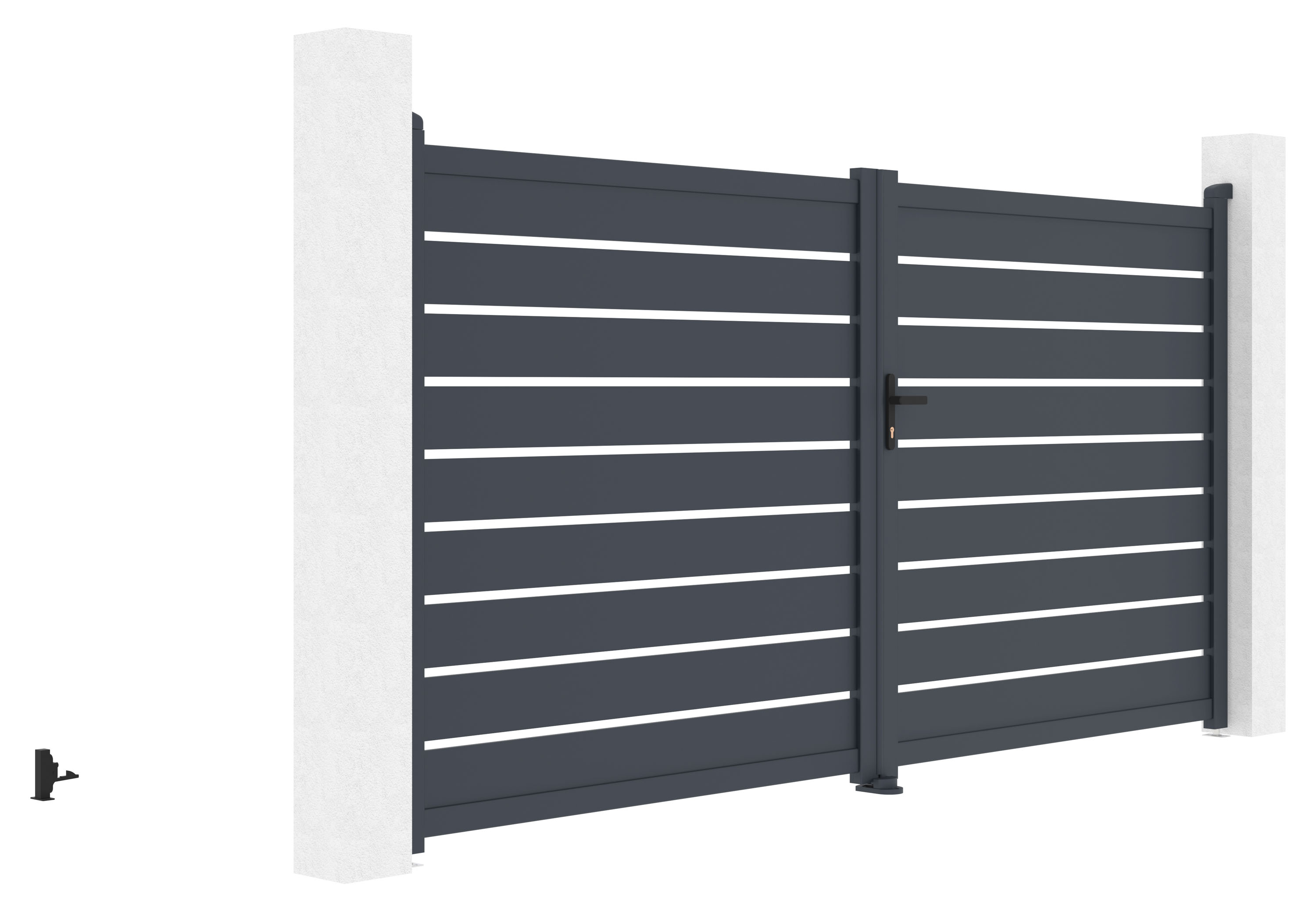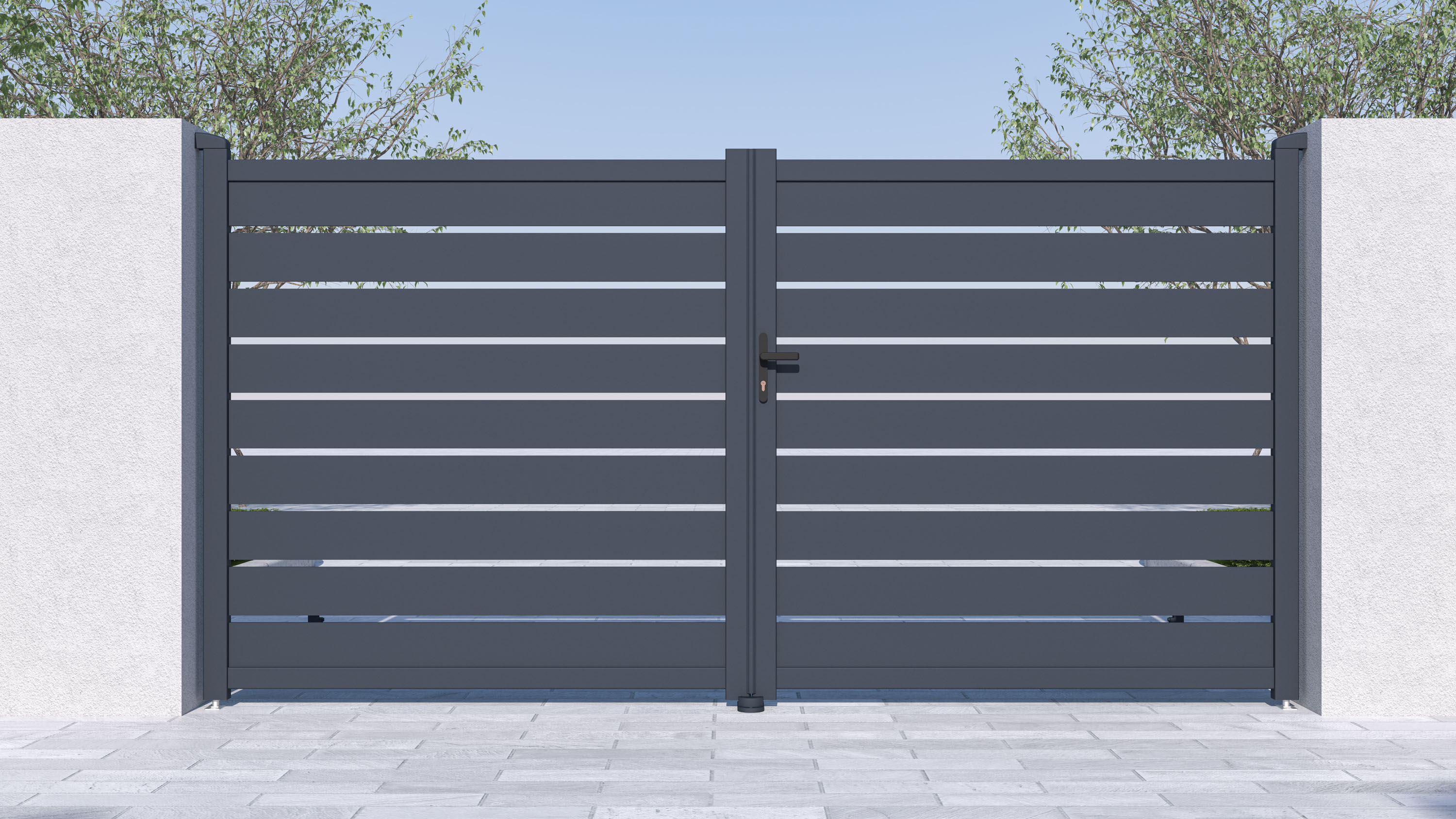 Výplň s horizontálně uloženými lamelami v atraktivním grafitovém provedení kombinuje dostatek soukromí s moderním designem, takže brána bude slušet každému typu oplocené stavby.