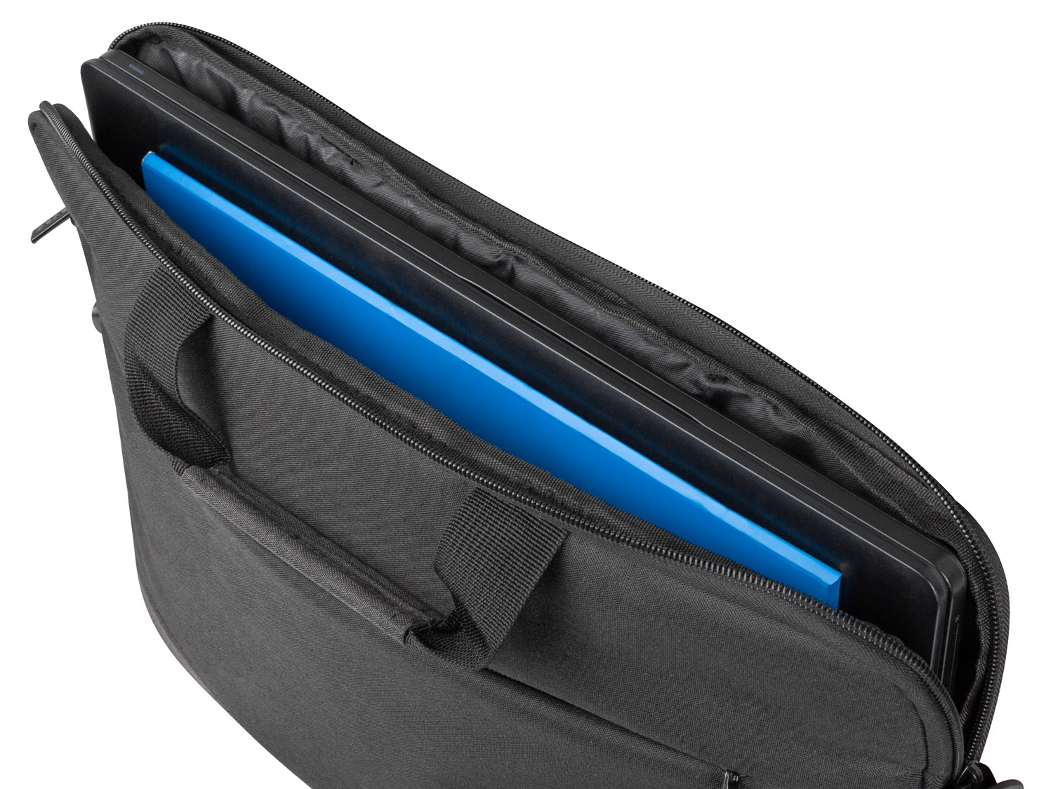 - Brašna s horním plněním určená pro notebooky do velikosti 15,6".