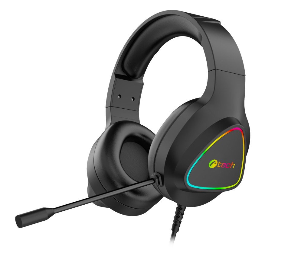C-TECH herní sluchátka s mikrofonem Midas (GHS-17), casual gaming, RGB podsvícení,3,5mm jack+USB(pods.) černá