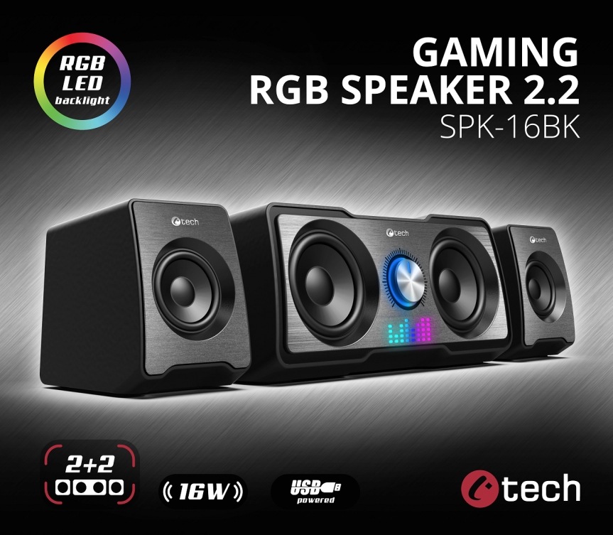 Kompaktní PC reproduktory C-tech SPK-16BK 2.2 vám zprostředkují
